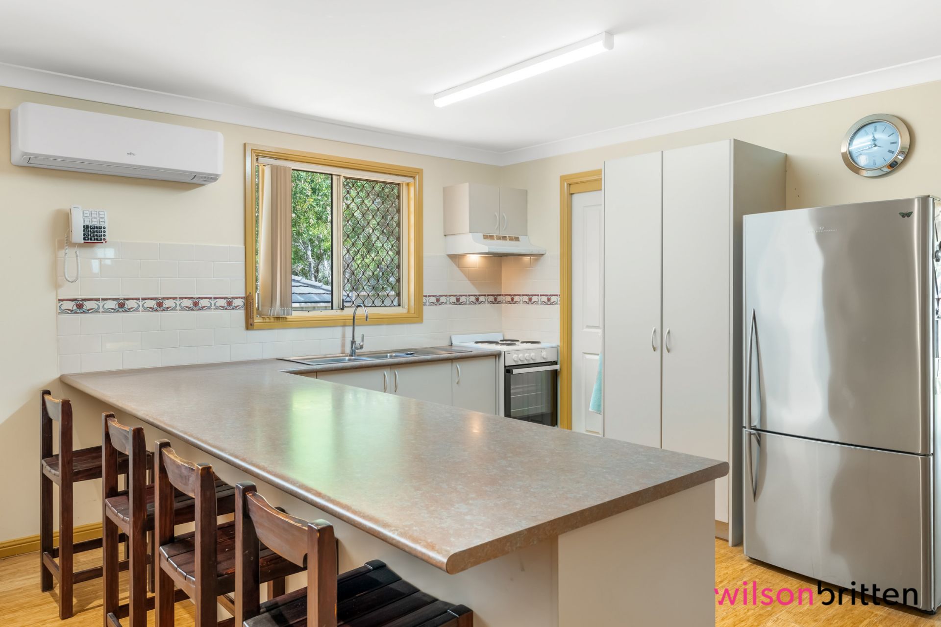 * Light-filled living area and functional kitchen